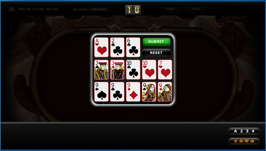 Di awal permainan setiap pemain akan di berikan dua kartu dan setelah itu satu kartu akan di bagikan selanjutnya sehingga total kartu menjadi masing-masing tiga kartu untuk setiap pemain.