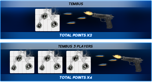 Jika menang dari satu pemain lain dalam semua baris (baris bawah, baris tengah, baris atas), maka mendapat 2x poin.