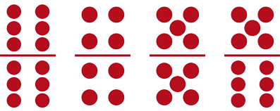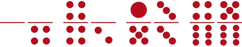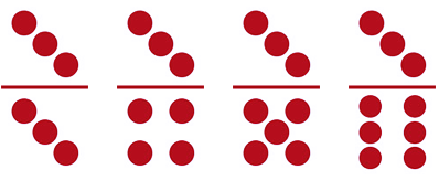 Seri 4 (empat) kartu, berjumlah 3 kartu dan terdapat 4 titik pada salah satu bagian masing-masing kartu (bagian atas atau bawah):