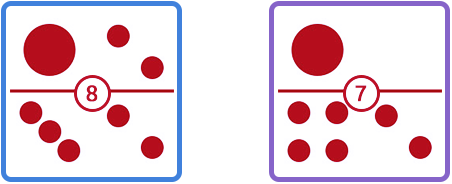 Untuk mengetahui penghitungan dalam permainan ini, anda cukup menghitung total jumlah titik pada setiap kartu di sisi kiri dan menjumlahkannya dengan jumlah titik pada kartu di sisi kanan.