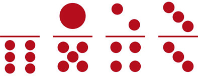 Seri 3 (tiga) titik, berjumlah 4 kartu dan terdapat 3 titik pada salah satu bagian masing-masing kartu (bagian atas atau bawah):