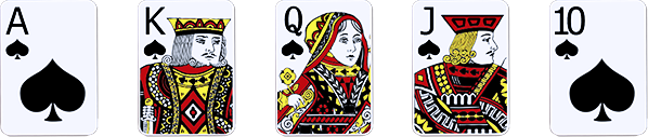 Kombinasi ini terdiri dari Ace, King, Queen, Jack dan Kartu angka 10 dengan lambang kartu yang sama.