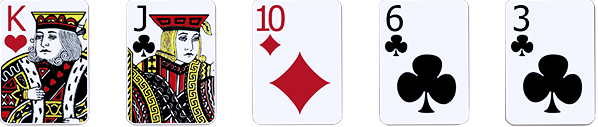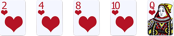Terdiri dari Ace, King, Queen, Jack, dan Sepuluh dengan suit yang sama.